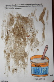 1. Seite mit etwas Klebrigem (Leim, Honig etc.) bestreichen.
