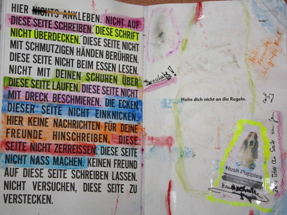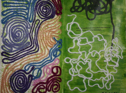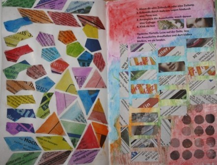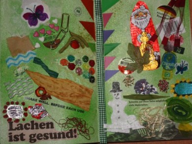 Diese Doppelseite wurde mit vielen verschiedenen Materialien gestaltet.