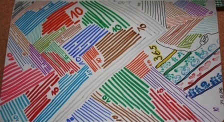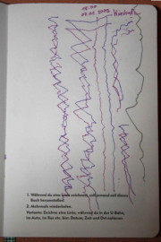 Variante: Zeichne eine Linie, während du in der U-Bahn, im Auto, im Bus bist. Datum, Zeit und Ort notieren.